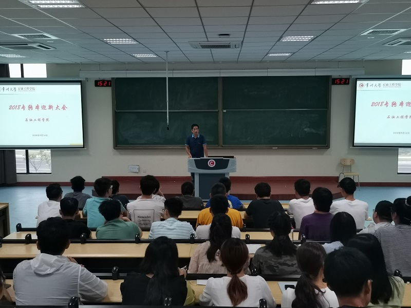 陆先亮首先向2018级专转本新生表示热烈欢迎,并对大家提出三点希望:一是确定好目标,提前为考研、就业做好准备。二是学会调整好心态,控制好自己的情绪。三是学会自我管理,做好时间安排。陆书记说,今年是石油工程学院建院十周年,学院正以全新的面貌迎接新同学,衷心地希望大家能够在接下来的学习生活里,学有所成、学有所获。
