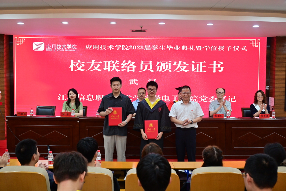 6月20日上午,tyc太阳成集团9728太阳集团97282023届学生毕业典礼暨学位授予仪式在图书馆报告厅举行。tyc太阳成集团9728党委常委、总会计师陆华良,教务处处长、学院院长薛冰,江苏信息职业技术学院微电子学院党委书记武汉,微电子与控制工程学院副院长孙霓刚,学院副院长张黎出席本次典礼。学院全体教师和毕业生参与,典礼由学院副院长华德仁主持。
