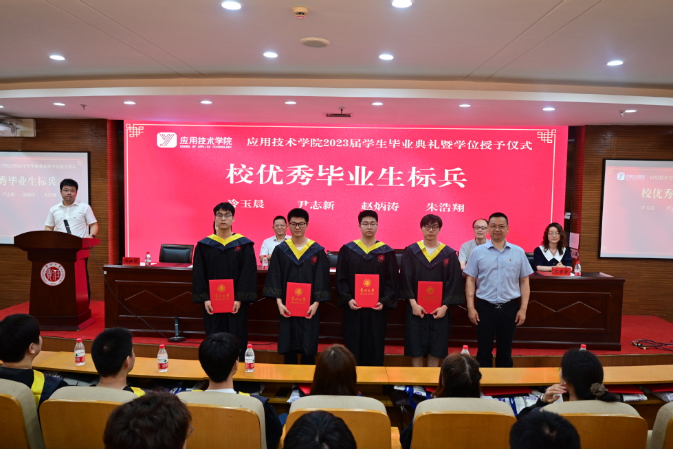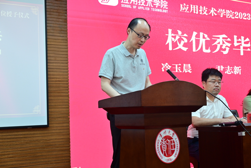 在庄严的国歌声中,毕业典礼拉开帷幕。张黎宣读学士学位授予决定,孙霓刚宣读校优秀毕业生标兵、校优秀毕业生、考研先进个人的表彰决定。陆华良为校优秀毕业生标兵、校优秀毕业生、考研先进个人颁奖。武汉为校友工作联络员颁发聘书。