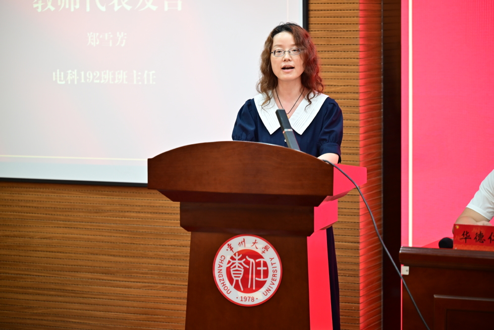 教师代表郑雪芳在典礼上发言,她希望毕业生能拥有理想、坚持梦想;能永远怀揣对世界的善意和对生命的热情;能有充足的勇气过自己真正想要的生活,虚心学习,勤于思考,为实现人生目标不懈努力。